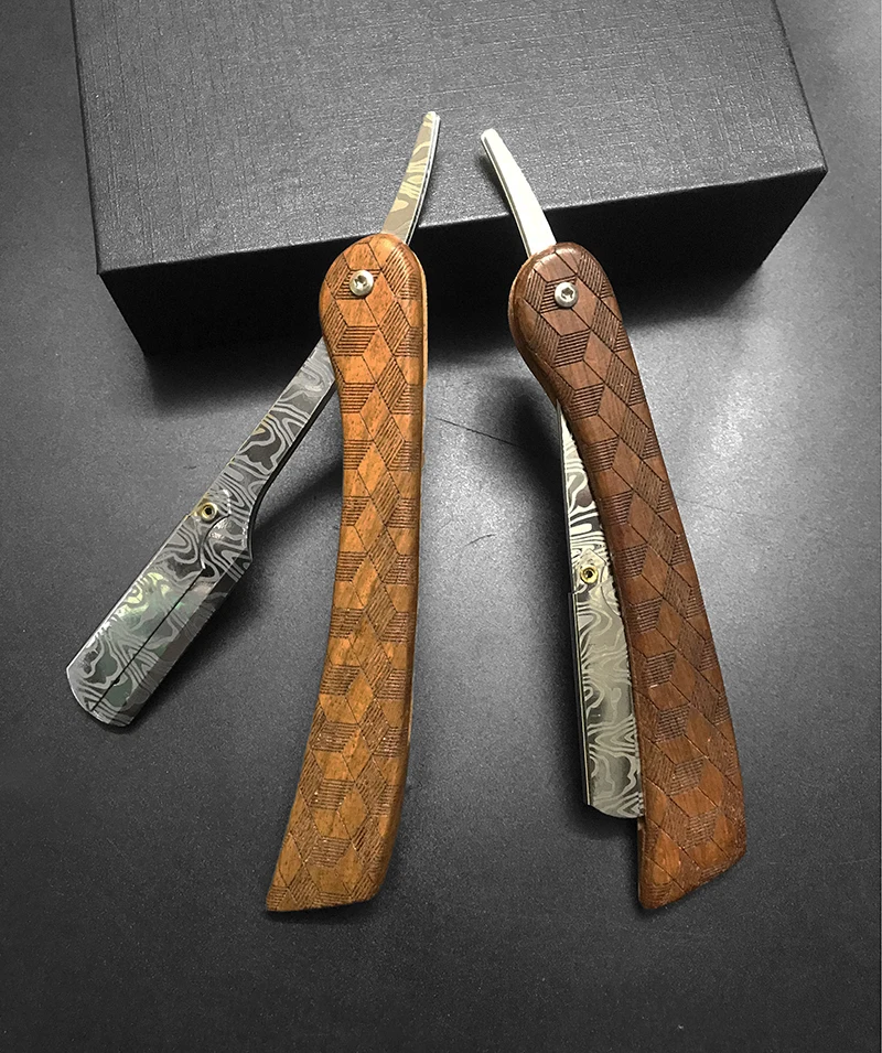 tan wood handle blade shaving razors professional barber shaver eyebrow razor men's replaceable blade shaving razor men gift